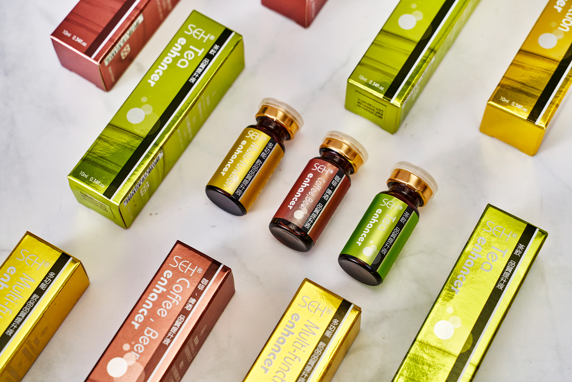 SEH®飲品品質提升液包含多功能飲品品質提升液(Multi-function Enhancer),咖啡&啤酒品質提升液(Coffee & Beer Enhancer),與茶飲品質提升液(Tea Enhancer),是運用最新的生物科技,除了能延緩氧化外,更能提升飲品的風味與品質,並具有獨特氧化還原作用,能把不好的氧化物質減到最低。產品本身無色無味。